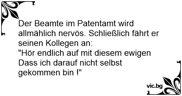 Der Beamte im Patentamt wird allmählich nervös. Schließlich fährt er seinen Kollegen an:
