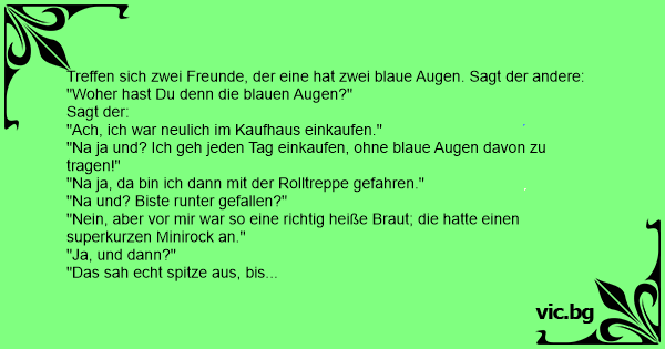 Treffen sich zwei Freunde, der eine hat zwei blaue Augen. Sagt der andere: