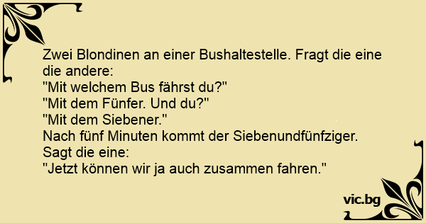 Zwei Blondinen an einer Bushaltestelle. Fragt die eine die andere:
