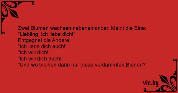 Doua flori vorbesc: - Ma iubesti? - Da te iubesc. - Bine, atunci sa chemam albinele.