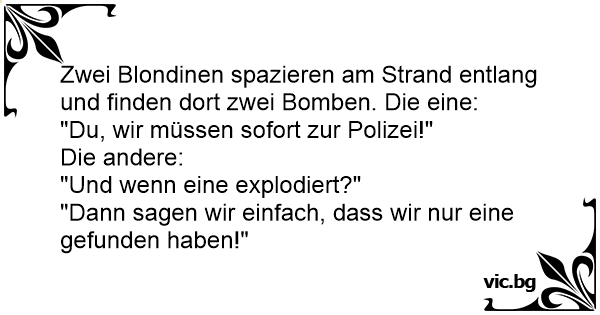 Zwei Blondinen spazieren am Strand entlang und finden dort zwei Bomben. Die eine: