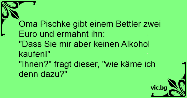 Oma Pischke gibt einem Bettler zwei Euro und ermahnt ihn: