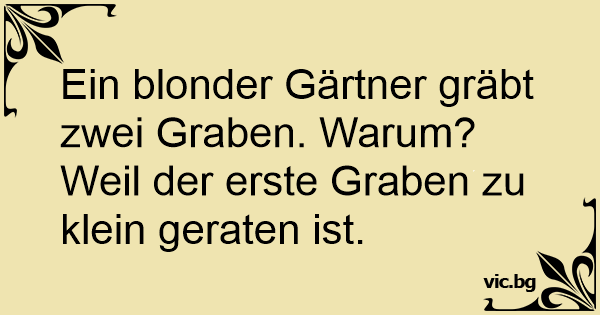Ein blonder Gärtner gräbt zwei Graben. Warum?