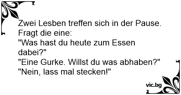 Zwei Lesben treffen sich in der Pause. Fragt die eine: