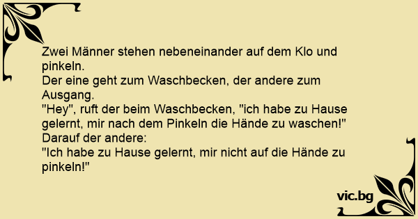"Hey", ruft der beim Waschbecken, "ich habe zu Hause gelernt, mir nach dem Рinкеln die Hände zu waschen!"