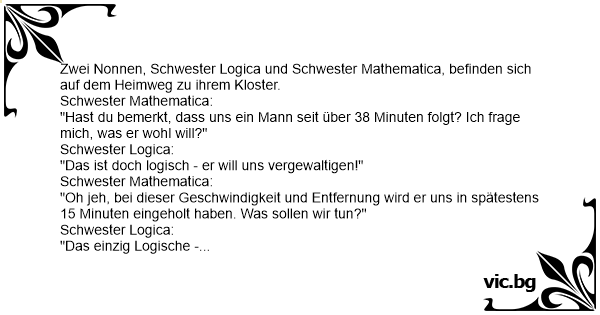 Zwei Nonnen, Schwester Logica und Schwester Mathematica, befinden sich auf dem Heimweg zu ihrem Kloster.