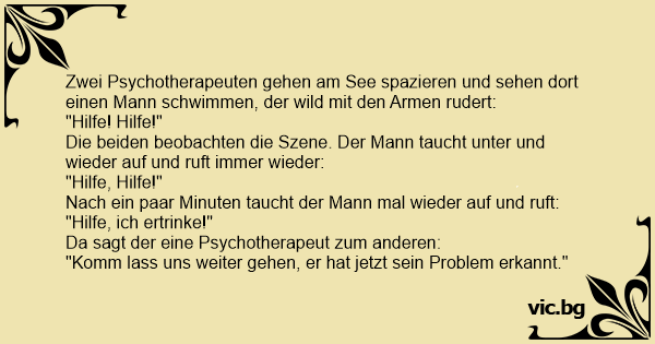 Zwei Psychotherapeuten gehen am See spazieren und sehen dort einen Mann schwimmen, der wild mit den Armen rudert: