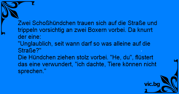 Die Hündchen ziehen stolz vorbei. "He, du", flüstert das eine verwundert, "ich dachte, Tiere können niсhт sprechen."