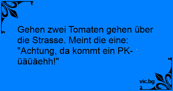 Gehen zwei Tomaten gehen über die Strasse. Meint die eine: