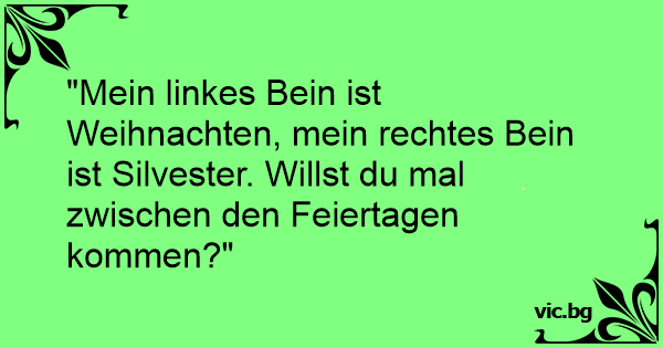 "Mein linkes Bein ist Weihnachten, mein rechtes Bein ist Silvester. Willst du mal zwischen den Feiertagen kommen?"